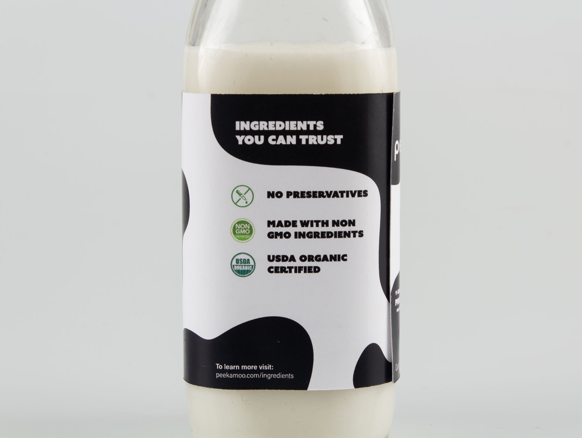 Peek-a-moo is an experiential food company with the fun-loving Bessie as our mascot! The fun peek-a-boo tab allows the consumer to see inside the package to get a better look at the product. Within the tab is a fun graphic to surprise and entertain kids, as this is the target audience.