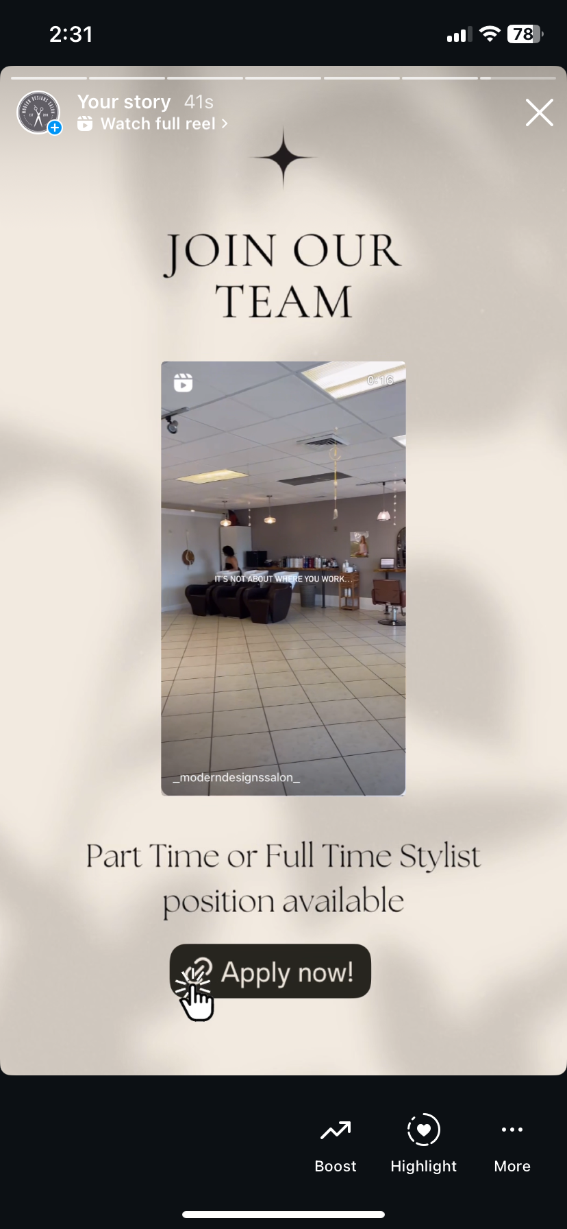 Translate their welcoming atmosphere to a social media platform, giving viewers a sense of who the stylists are and what clients can expect during their appointment